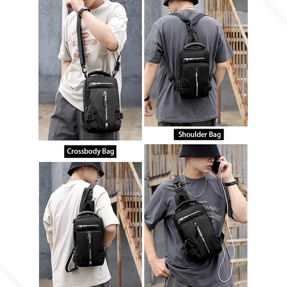Bolsa de grande capacidade: a bolsa mensageiro unissex tem 5 bolsos com grande capacidade e espaço suficiente para todos os seus itens essenciais. Podendo acomodar tablet MINI de 9,7 polegadas, pode armazenar carteiras, guarda-chuvas, água mineral, óculos, chaves, telefones celulares, cigarros, isqueiros, tocadores de música, óculos de sol, etc.