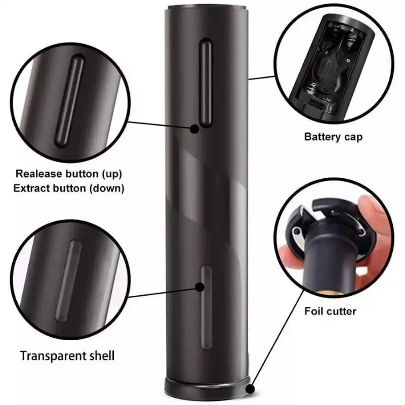 Abridor de Vinho Elétrico A Pilha Saca Rolhas